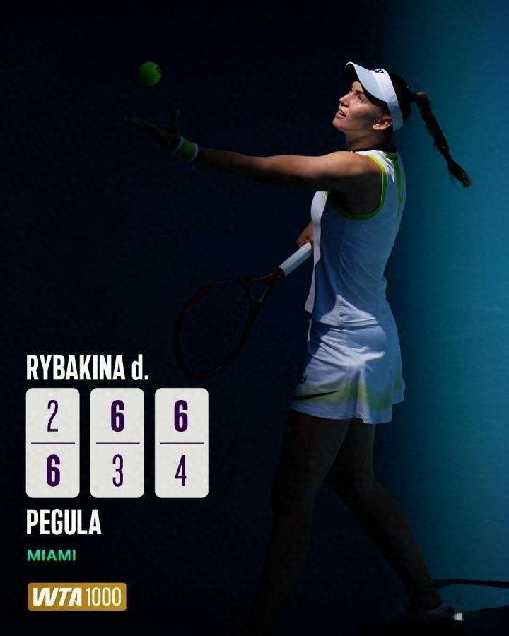 WTA1000 迈阿密站女单 1/4 决赛上演焦点对决,3 号种子莱巴金娜与 5 号种子佩古拉展开三盘鏖战,最终莱巴金娜以 2-6、6-3、6-4 的比分逆转取胜,成功锁定四强席位,同时延续了对佩古拉的五连胜战绩。